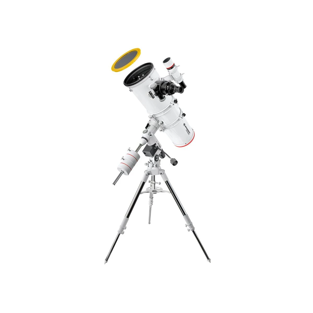 La monture EXOS 2 Bresser accompagne parfaitement le tĂ©lescope NT-203s/800, offrant une stabilitĂ© exceptionnelle et une grande capacitĂ© de charge. Grâce aux roulements Ă billes radiaux, les mouvements sont prĂ©cis et fluides, tandis que le palier de l’axe AD est optimisĂ© pour rĂ©duire tout jeu. Le trĂ©pied renforcĂ© minimise les vibrations indĂ©sirables, assurant des observations stables et de qualitĂ©.